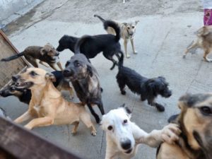 Währenddessen haben wir noch die restlichen Hunde-Fotos für die Homepage und die Paten geschossen. Silke hat weiter mit Floyd gearbeitet und nachdem Geschirr und Halsband am Hund waren (erstaunlicherweise ohne Probleme) haben die beiden einen Spaziergang erst durch den Shelter und dann auch nach draußen gemacht. Im Shelter war die Gruppe der Hofhunde frei wie immer. Floyd und Filou fanden sich ganz ok und hätten vielleicht sogar harmoniert. Die anderen Hunde, und vor allem Nicki fand Floyd aber doof…. Na ja, armer Kerl, ist auch viel in drei Tagen….