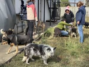 Ein paar aktive Mitglieder verbringen dieses Wochenende bei befreundeten TierschützerInnen in Rumänien: Ganz früh am Morgen startete unser Flieger Richtung Craiova. Bei stürmischem Wetter kamen wir etwas holprig auf rumänischem Boden an. Nachdem wir im Hotel eingecheckt hatten machten wir uns auf den Weg zu Gabriela und ein paar ihrer Schützlinge. Anschließend fuhren wir zu Roxana und deren Hunde zuhause. Wieder eroberte der supernette Iky alle Herzen im Sturm. Beagle Sandy, ein Neuzugang mit trauriger Vorgeschichte, werden wir in den nächsten Tagen noch genauer vorstellen. Heute, am Samstag, ging es ganz früh los nach Afumati. Entgegen der wieder nassen Wettervorhersage blieben wir trocken. Natürlich mussten wir alle Hunde-Welpen und Katzen-Kinder ausführlich kuscheln. Es ist immer wieder schön wie dort Hunde, Katzen und Hühnerküken durcheinander laufen. Unsere Tagestour ging direkt anschließend weiter in den Shelter. Wir begrüßten alle Neuzugänge, freuten uns über bekannte Gesichter und sprachen ein paar Einzelfälle mit Bia und Dana durch. Holly wurde aufgrund Blutungen und sehr schlechtem Zahnstatus heute noch beim Tierarzt vorgestellt. Abends haben wir nett beisammen gesessen und die Eindrücke des Tages Revue passieren lassen.