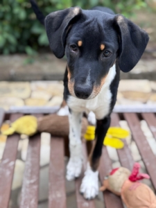 Die kleine Yota und ihre Schwester Maja wurden mit ca. 5-6 Wochen in Griechenland auf den Müll geworfen. Dort hat sie die Tierschützerin Florance gefunden und bei sich aufgenommen. Maja hatte einen Infekt und konnte sich kaum bewegen. Yota war unauffällig. Beide sind negativ auf Leishmaniose und Herzwürmer getestet und haben alle Impfungen bekommen. Sie sind putzmunter und kommen am 8.11. gemeinsam nach Deutschland. Maja hat ihre Famile schon gefunden – und die ist so lieb auch Yota als Pflegehund aufzunehmen. Von da aus suchen wir auch für Yota ein schönes Zuhause in dem die ganz zuckersüße Hündin für immer bleiben darf. Yota ist ein recht aktiver Junghund mit alterstypischen Flausen im Kopf. Sie braucht aktive Hundemenschen, die gern Zeit und auch Geduld in das Training investieren möchten. Yota ist vermutlich ein Jagthund-Mix, der gern viel läuft und für alle Abenteuer zu begeistern ist.