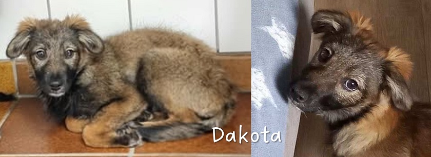 Dakota sucht ein liebevolles Zuhause, in dem sie Geborgenheit, Sicherheit und Fürsorge erfahren darf. Ursprünglich kommt Dakota aus Rumänien und durfte mit ihrer Schwester Dea auf eine Pflegestelle reisen. Sie ist die Kleinere der beiden und hat etwas längeres Fell. Zu Beginn sind Dea und Dakota sicherlich etwas schüchtern und brauchen etwas Zeit. Sie sind superfreundlich und kennen den Kontakt zu anderen Hunden und Katzen. Wir wünschen uns für Dakota verantwortungsbewusste Menschen, die ihr Zeit, Geduld und Liebe schenken und sich bewusst sind, dass ein Hund ein treuer Begleiter fürs ganze Leben ist. Wie groß Dakota ausgewachsen einmal sein wird können wir nicht genau sagen, vermuten aber dass sie eine mittlere Größe erreichen wird (40-50 cm).