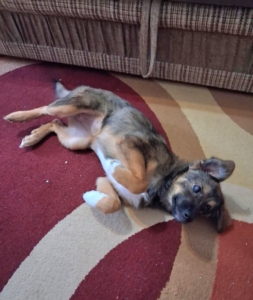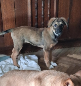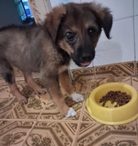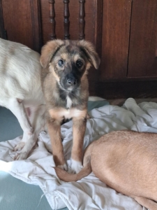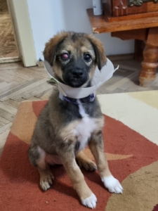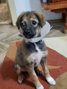 Daisy hatte als kleiner Welpe, als sie gefunden wurden, eine schlimme Augenentzündung und der Tierarzt versuchte das Auge zu retten. Zweimal wurde sie operiert, die Entzündung ist abgeklungen, aber leider wird sie auf diesem Auge vermutlich blind bleiben. Während dieser ganzen Zeit der Behandlung durfte sie bei Gabriela zu Hause wohnen. Nun ist es Zeit, dass auch Daisy ihr Glück versucht. Daisy ist wie auch ihre Schwestern superfreundlich und kennt den Kontakt zu anderen Hunden. Wir wünschen uns für Daisy verantwortungsbewusste Menschen, die ihr Zeit, Geduld und Liebe schenken und sich bewusst sind, dass ein Hund ein treuer Begleiter für das ganze Leben ist. Natürlich muss die junge Hündin das 1×1 der Hundeschule noch lernen, wie z.B. Leinenführigkeit und Stubenreinheit. Doch mit Geduld und konsequenter Führung wird sie schnell verstehen was man von ihr erwartet. Wie groß Daisy ausgewachsen einmal sein wird können wir nicht genau sagen, vermuten aber, dass sie eine mittlere Größe erreichen wird (40-50 cm).