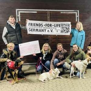 800,- € „Wir sagen Danke!“ Danke an Sarah Ottersbach und Judith Hammes für diese großzügige Spende. Sarah Ottersbach gehört eine in Siegburg ansässige Hundeschule mit dem Fokus auf alltagstaugliches Training und sinnvolle Beschäftigung für „jedes“ Hundeheldenteam. 650,- Euro sind durch Spendenabende und einer zusätzlichen Spendendose, die zu jedem Kurs aufgestellt wurde, gesammelt. Weitere 150,- € kamen von Judith noch dazu. Judith Hammes, Physiotherapeutin und Osteoparhin für Hunde und Pferde besucht mit Begeisterung die Hundeschule von Sarah Ottersbach und so entstand diese tolle Idee, unseren Verein „Friends for Life“ zu unterstützen. Das gespendete Geld wird für medizinische Behandlungen und Kastrationen eingesetzt. Bei der Scheckübergabe durften auch einige unserer Hunde nicht fehlen. So posierten unsere dreibeinige Ivy, die 2019 verletzt am Straßenrand mit 7 quirligen Welpen lag und gerettet wurde, Phillipp, der von Judith nach ihrem Besuch in Rumänien adoptiert wurde und die unseren Verein seitdem unterstützt und unser Javel, der seit Ende November in Deutschland ist und noch auf eine eigene Familie wartet. Danke an Sarah und Judith für diese tolle Aktion.