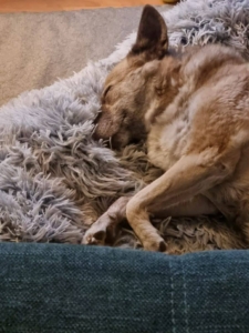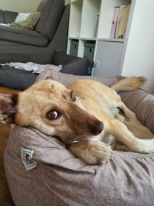 „Ich heiße Cookie (Mudi-Mix Hündin) bin 7 Jahre alt und komme aus Rumänien. Seit meinem 2. Lebensjahr bin ich in Deutschland bei meinem Frauchen (April 2021). Ich bin gechipt, kastriert und eine sehr ruhige und zufriedene Mitbewohnerin.
