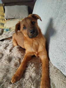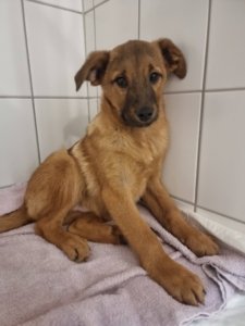 Findus ist ein richtig hübscher, junger Hundemann. Auf der Pflegestelle kann er sich ausgelassen mit sich selbst beschäftigen wenn er im Garten mit seinem Spielzeug herumtollt. Aber auch wenn Hundekumpel zu Besuch kommen freut er sich. Zunächst war er nach der Reise erst einmal etwas beeindruckt. Schnell hat er sich eingewöhnt und macht täglich Fortschritte. Aus der Zeit in Rumänien kennt er andere Hunde und auch Katzen. Wie Findus auf Kinder reagiert wissen wir nicht. Adoptanten sollten sicherlich besser Hundeerfahrung mitbringen, da Findus wenn er sich einmal sicher fühlt auch versucht seinen Willen durchzusetzen. Er kann auch ein kleiner Draufgänger sein. Findus möchte beschäftigt werden, viel lernen und am Liebsten ist er immer dabei. Alleine sein findet er noch doof. Nun wird auf der Pflegestelle schon fleißig alles trainiert was ein junger Hund so lernen muss. Wir denken das Findus erwachsen 50 oder mehr cm Schulterhöhe haben wird. Wenn Sie Findus auf seinem Weg begleiten möchten und bereit sind sich der Verantwortung „junger Hund“ zu stellen und aktiv mit Findus durchs Leben zu gehen – dann melden sie sich gerne bei uns.